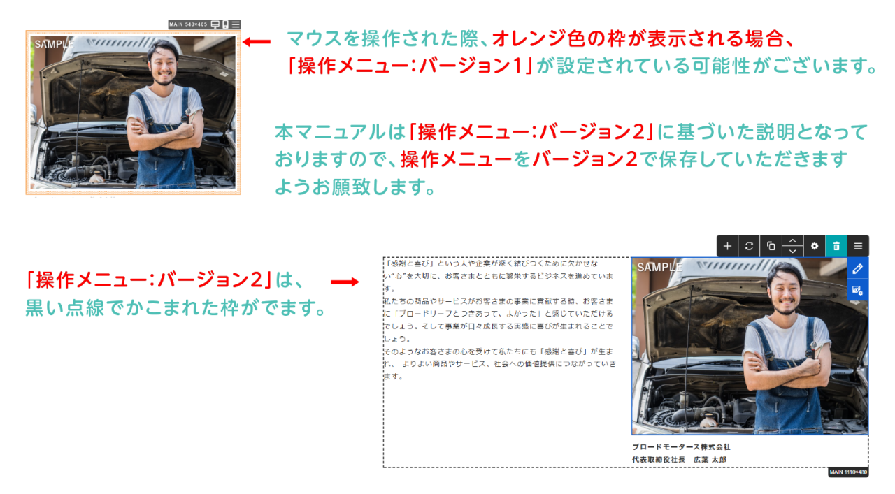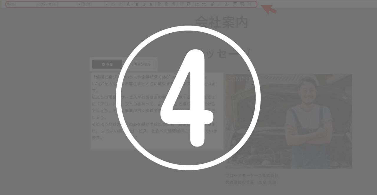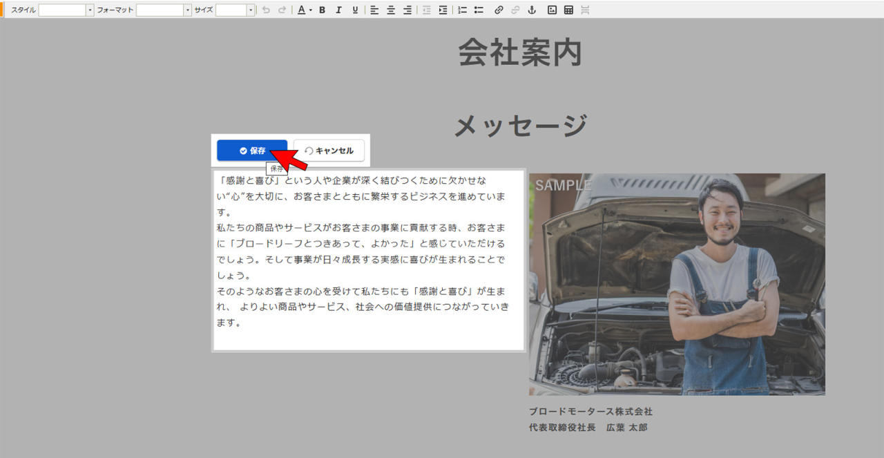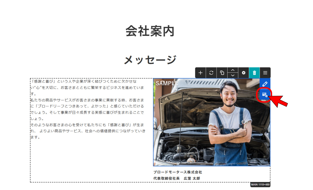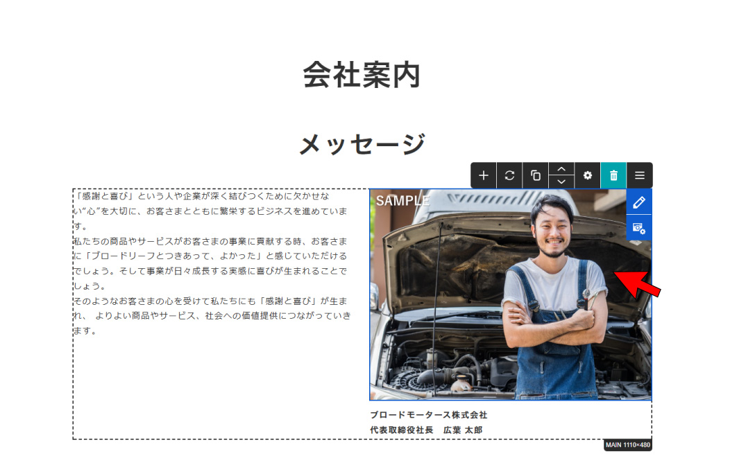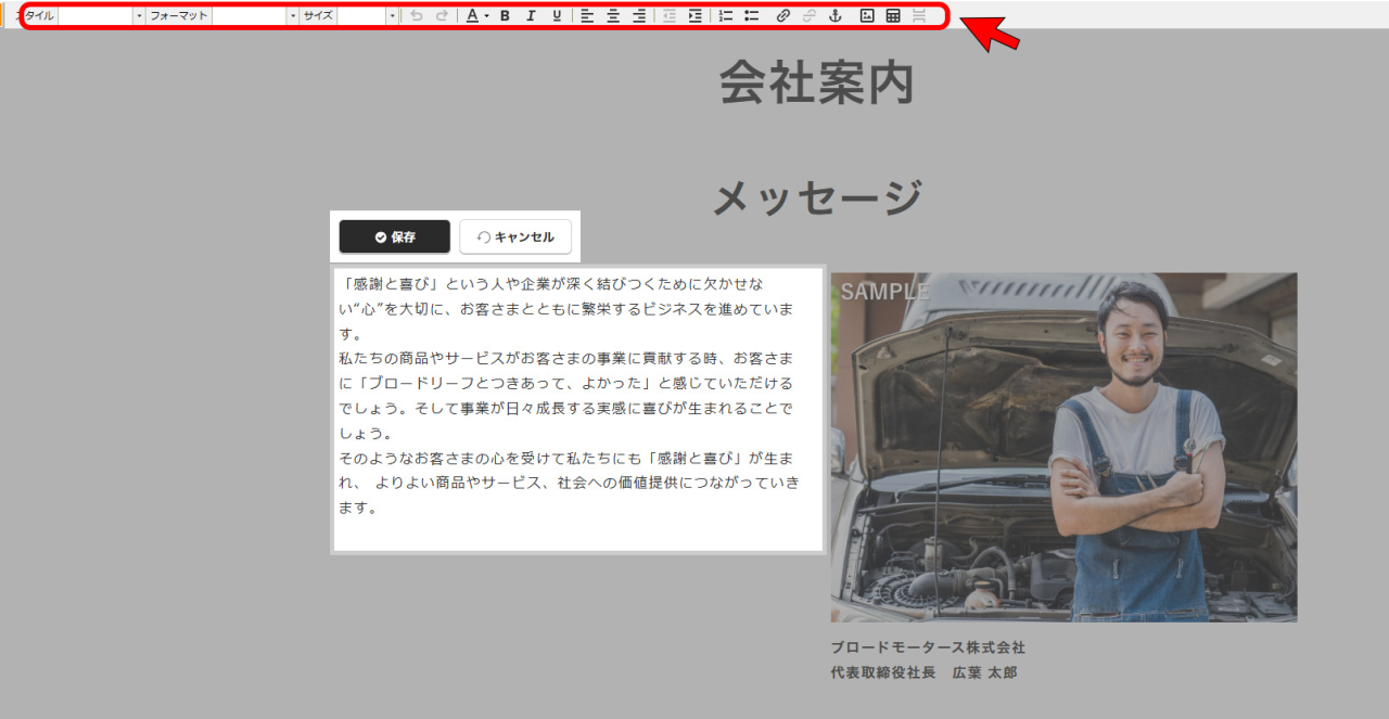 ※画像をクリックでも編集が可能ですが、クリックの仕方等により、フリーエディタを開いてしまったり、リンクが貼ってある場合はリンクが機能してしまうため、右上の[編集]