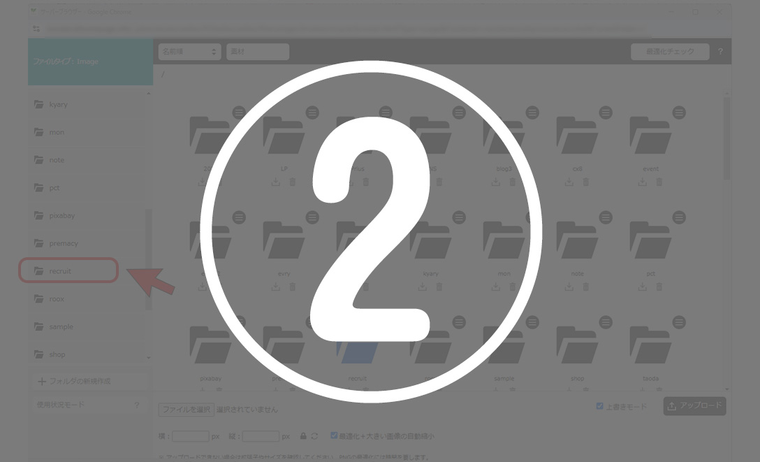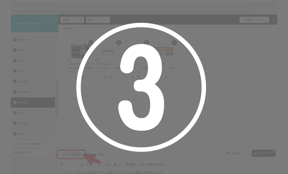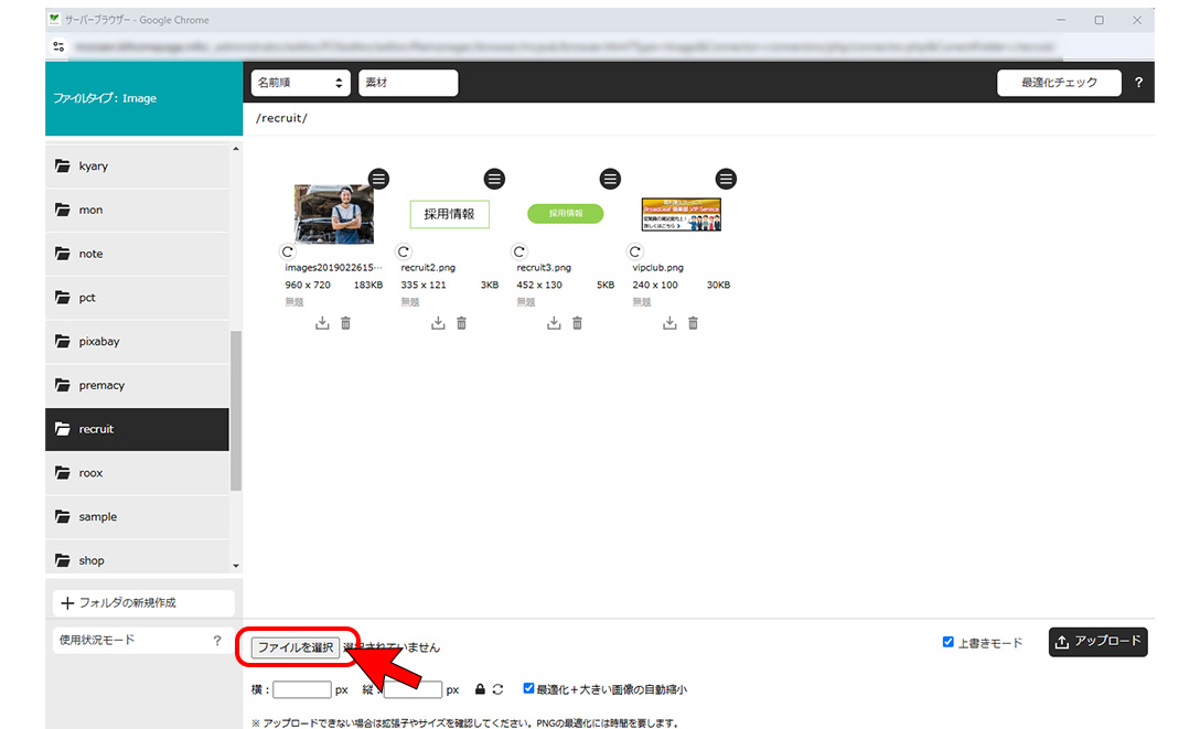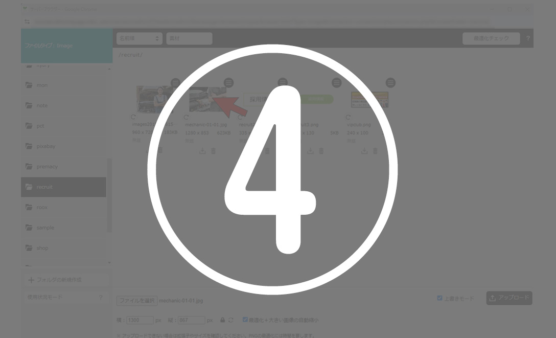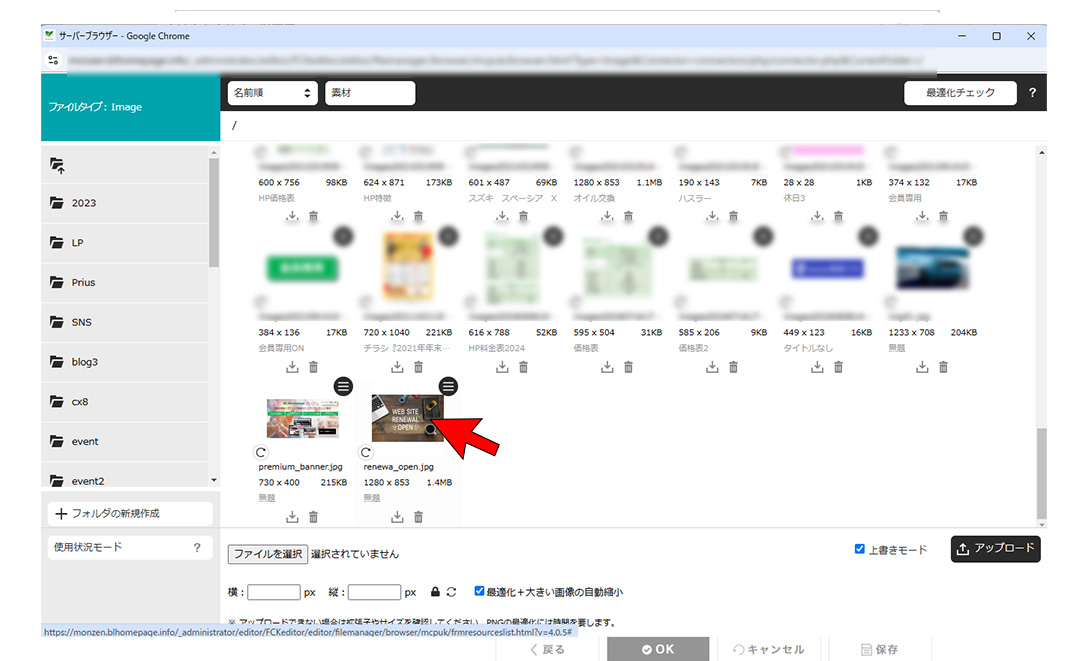 ※iPhoneの写真をアップロード後、サーバーフォルダで画像が表示されない時は拡張子を確認してください。heic形式には対応していません。