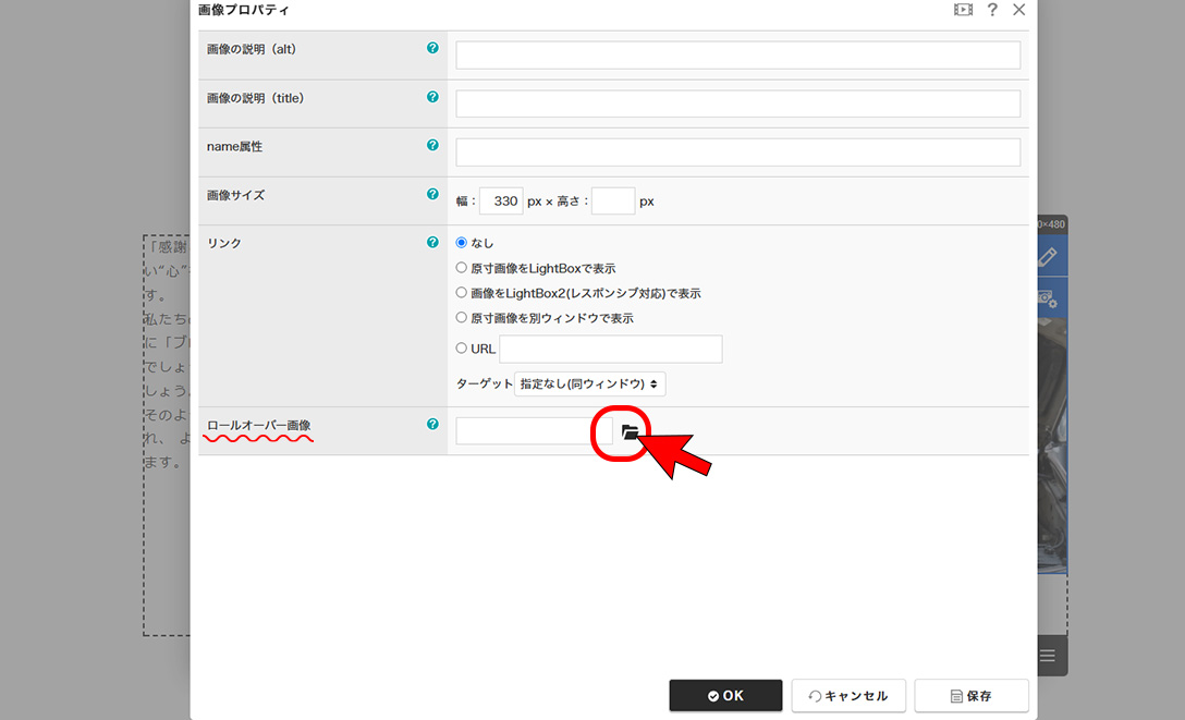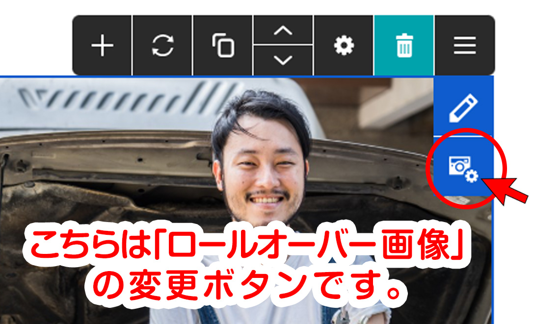 「ロールオーバー画像」の変更等で使用するボタンです。(参照❶)