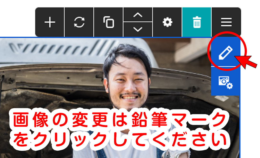 ・通常の画像の変更をする場合は鉛筆マークの[編集]ボタン