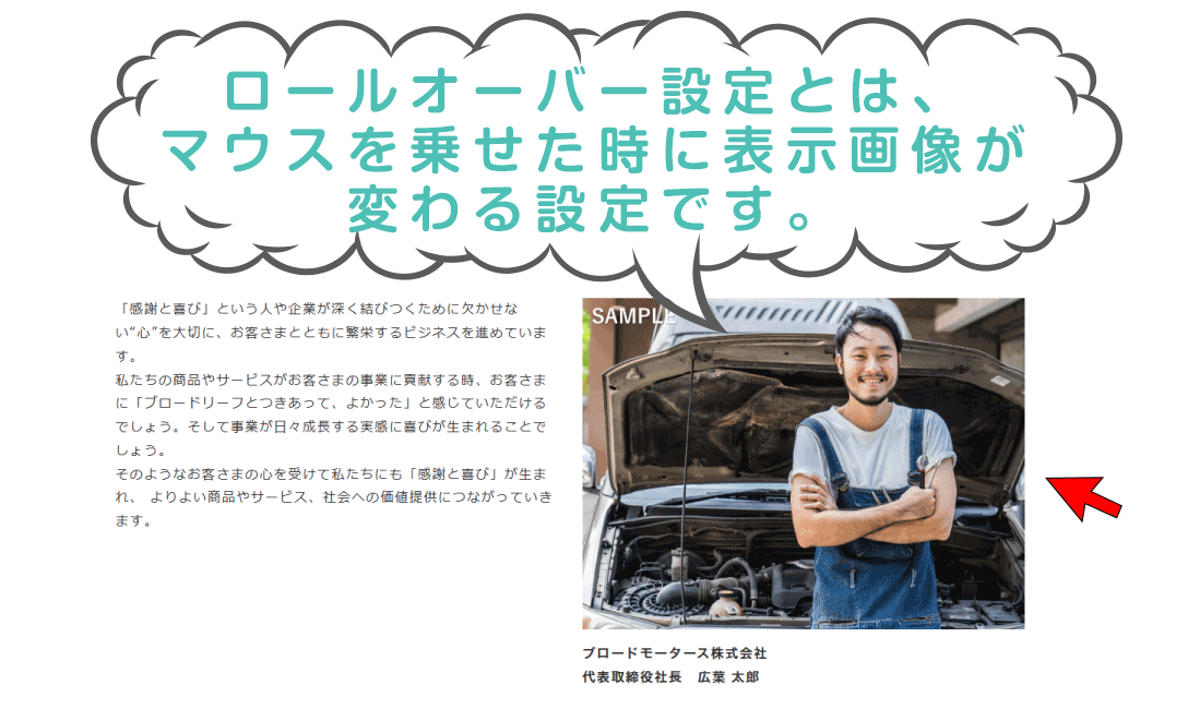 マウスを載せた時に表示画像が変わる設定の仕方。