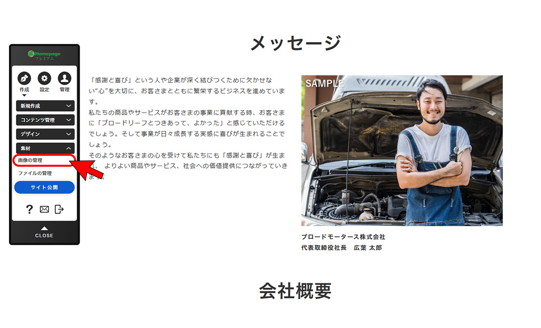 画像の変更も最短2クリックで変更可能。