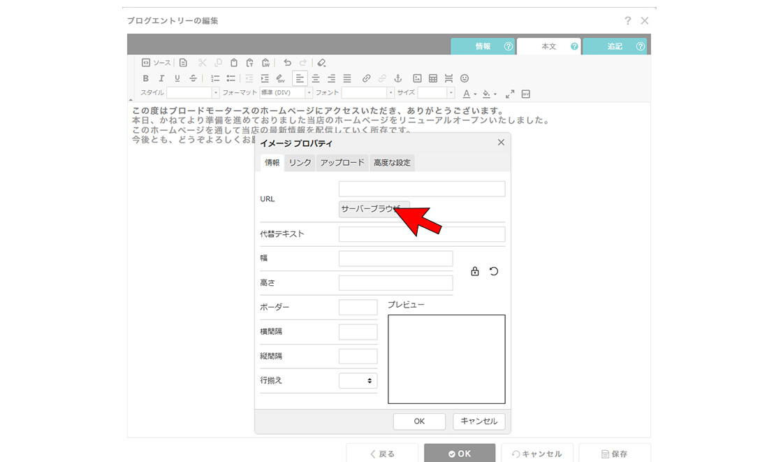②[イメージ挿入/選択]ボタンを押す。