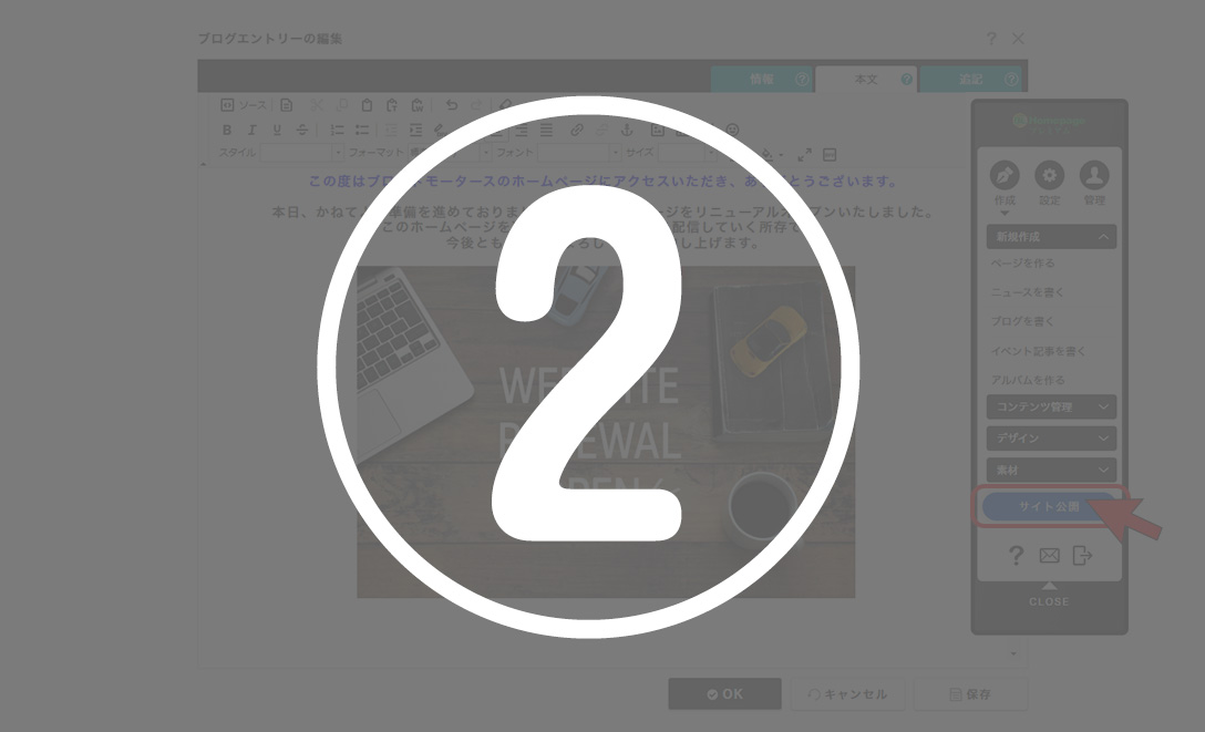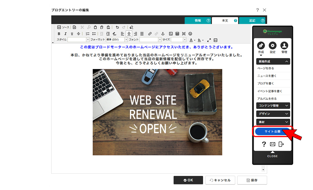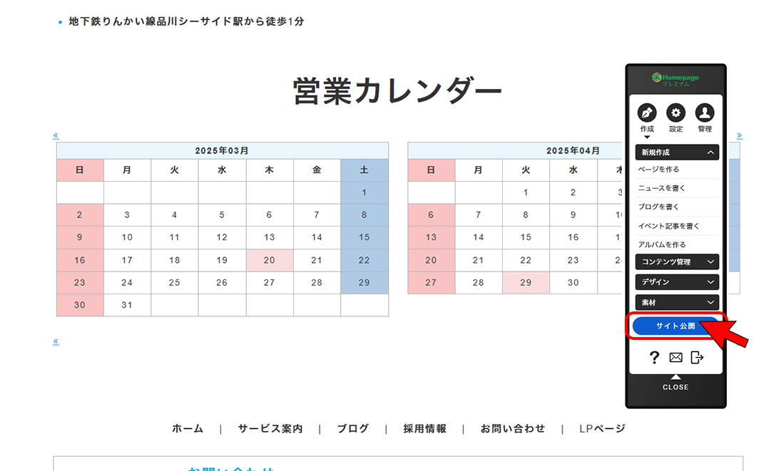 ②【注意】最後に必ず「サイト公開」ボタンを押す。