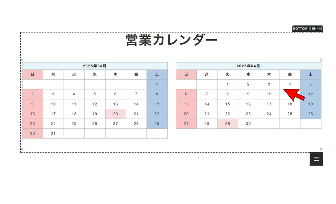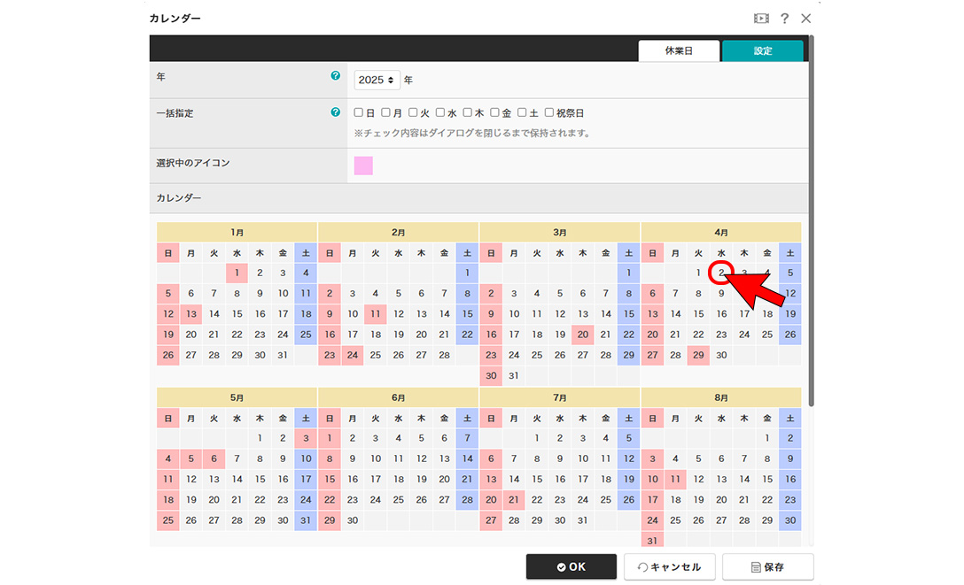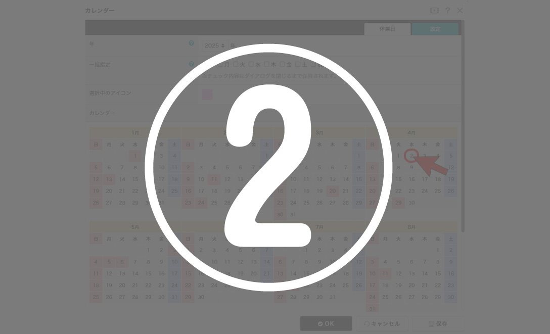 ②休日に指定したい日をクリックする。