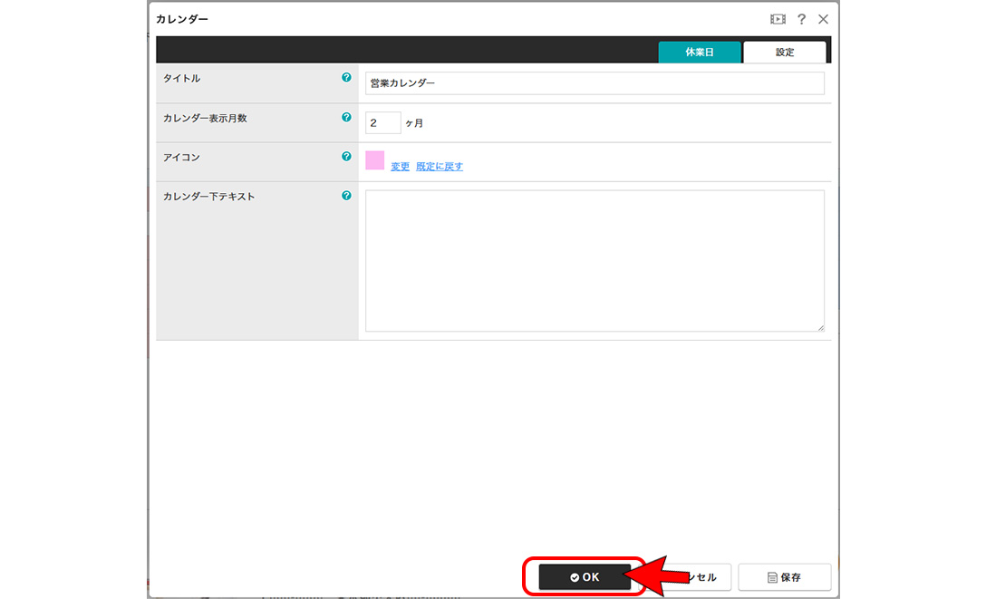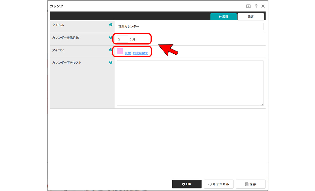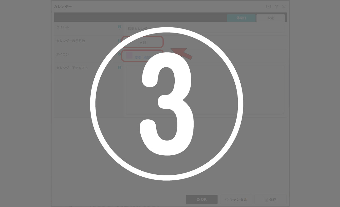 ③カレンダー表示月数や、休日のアイコン画像は[設定]から変更する事ができます。