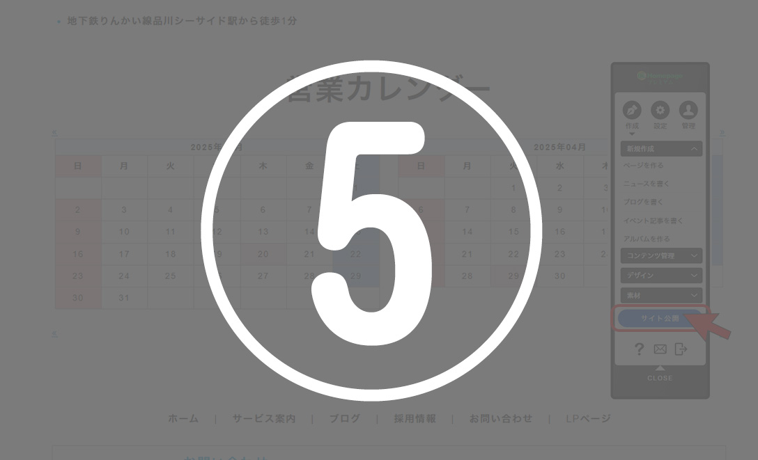 ⑤サイト公開ボタンを押す。